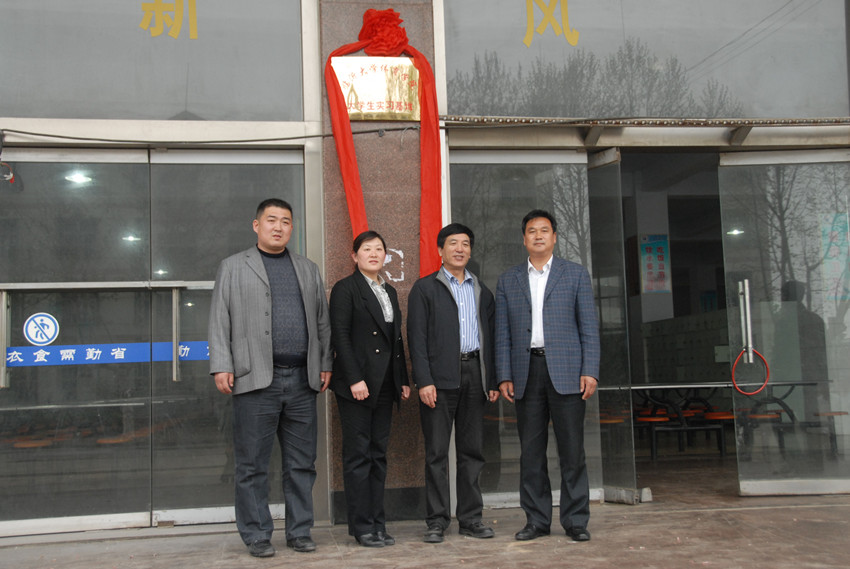 4月10日,华体会官方端网站登录入口(高尔夫学院)在郯城县第二中学隆重举行“大学生实习基地”揭牌仪式。院长奚凤兰、正处级调研员杨世传、郯城二中校长王首先、党委副书记兼纪委书记李云成出席揭牌仪式。奚凤兰、王首先共同为“大学生实习基地”揭牌。