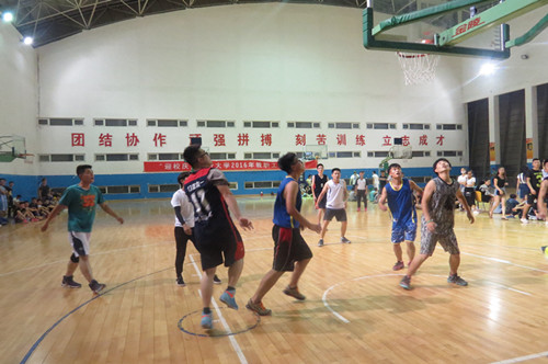 为庆祝2016届毕业生顺利毕业,5月30日晚,体育学院学生会篮球友谊赛在体育教学训练馆—篮球馆举行。比赛在2015—2016届学生会成员与2016届毕业生学生会成员之间进行。