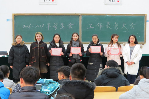 12月27日,2016-2017学年第一学期学生会表彰大会在201举行。学生会主席团成员、各部部长、副部长和干事参加大会。副主席朱鹏月主持会议。