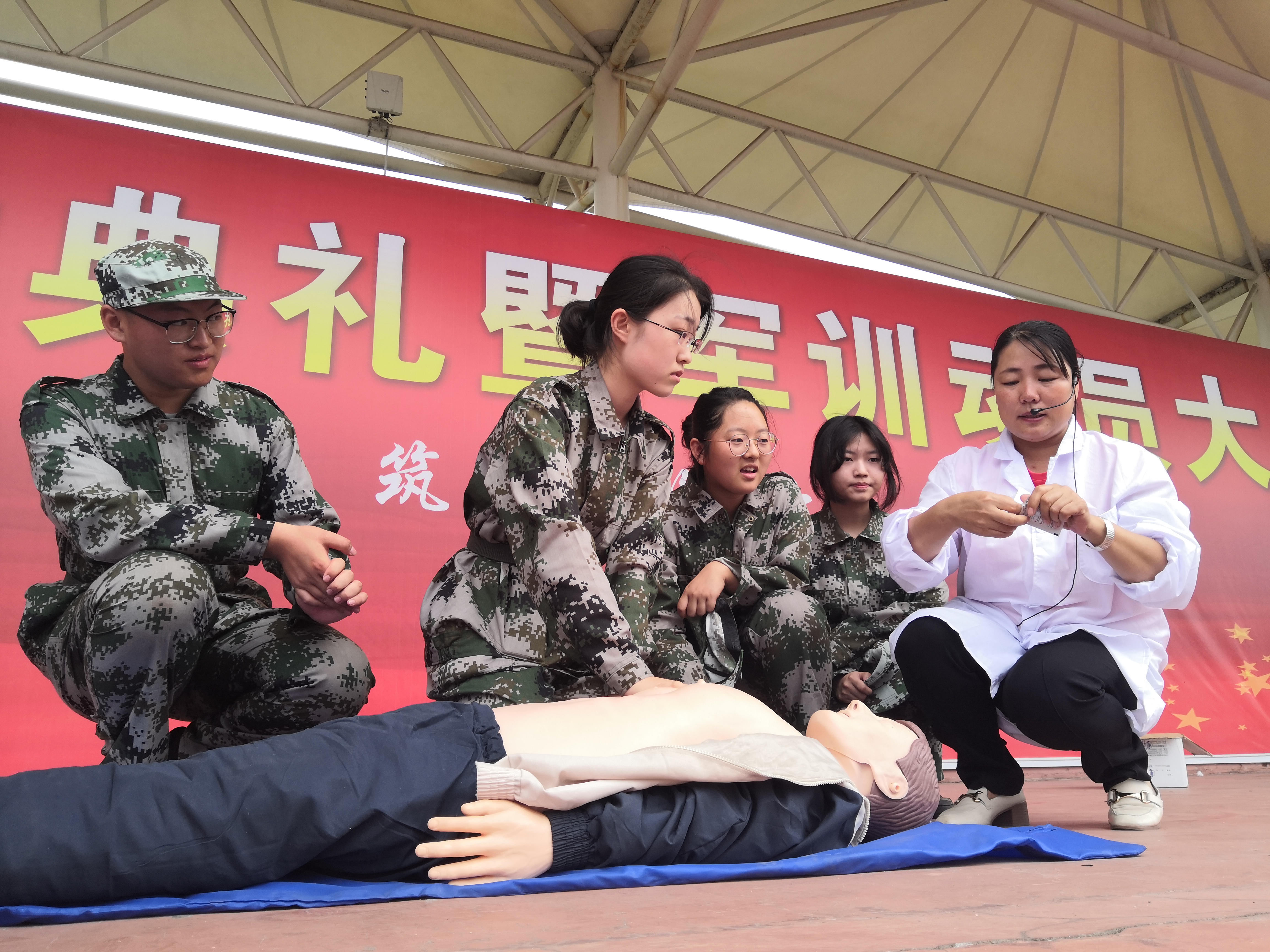 此次培训内容主要包括心肺复苏术和人工呼吸的讲解及演示。首先张为杰老师就心脏复苏和人工呼吸的整个流程及注意事项做详细的讲解,随后王雪芹示范在心肺复苏模拟人上进行操作技能的训练。现场的同学和教官认真听讲,积极参与,模拟演练。