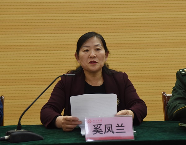 首先,奚凤兰对武警临沂支队的各位领导的到来表示热烈欢迎,随后具体介绍了我院这几年开展国防教育,拥军、助军工作中取得的成绩。