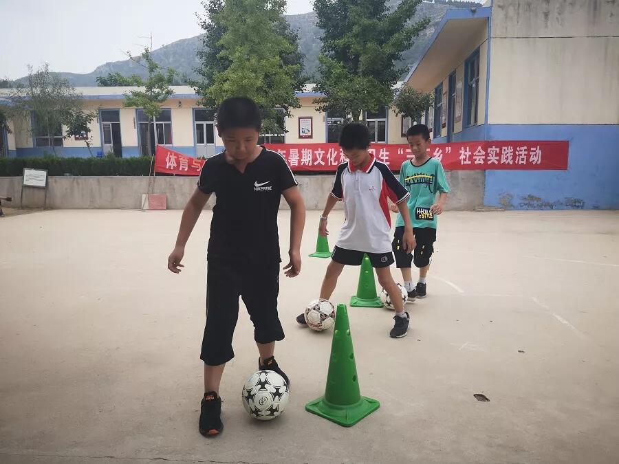 魏铭辰带领孩子们进行足球的表演,任意穿梭,随心所欲。