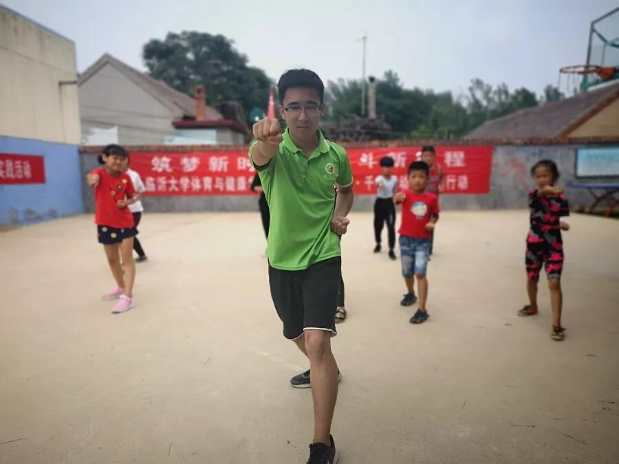 孩子们表演武术的基本动作,展示了这段时间的成果。