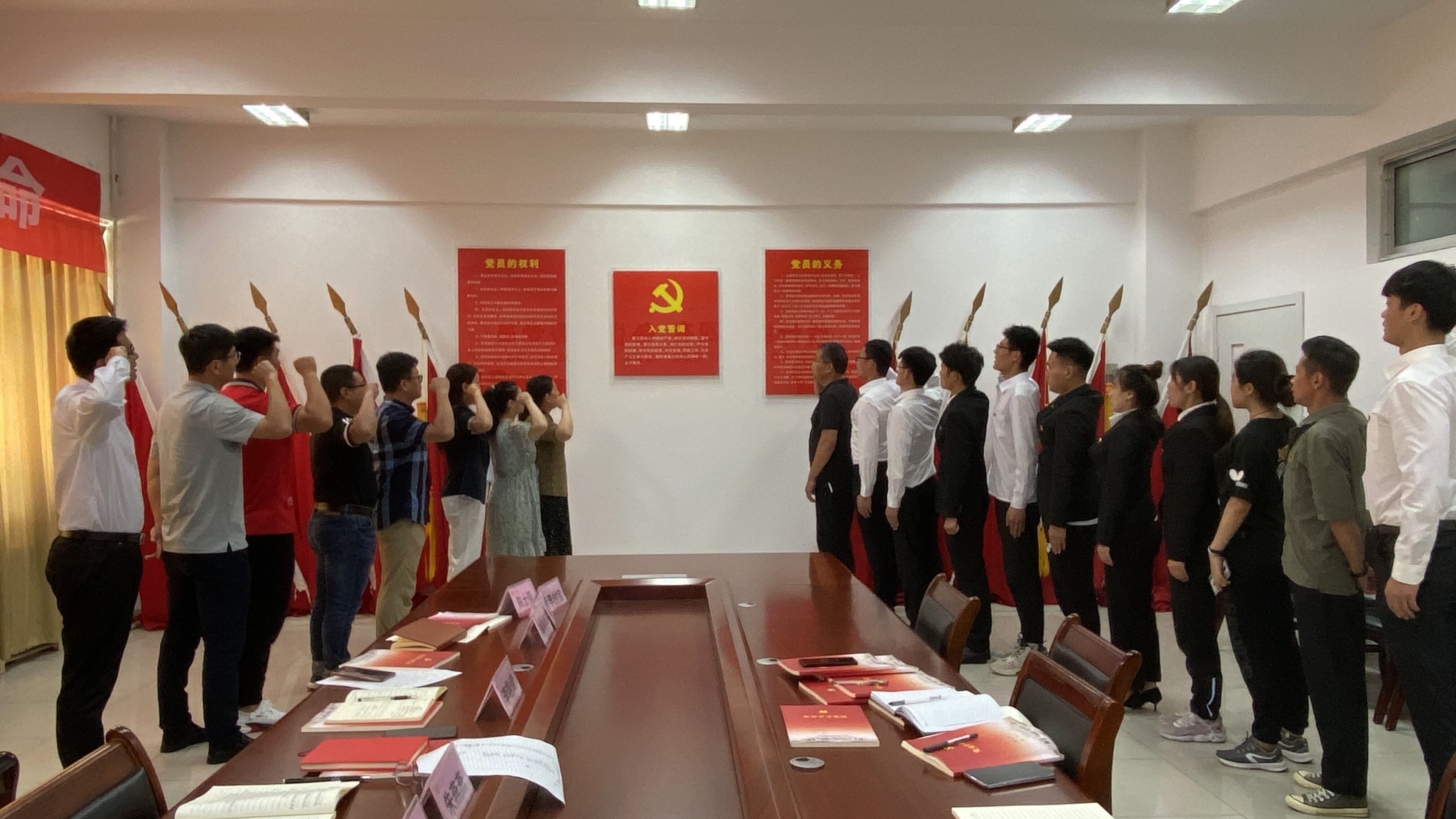 随后,全体党员郑重举起右拳,在鲜红的党旗下,声音庄重而洪亮地重温了入党誓词,在铿锵有力的宣誓中,重新感受入党时的荣誉感和使命感。