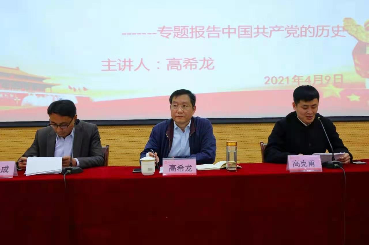 党课开始,全体起立奏唱国歌,随后高克甫宣读了《学员守则》。课上,高希龙同志讲述百年党史有三个阶段,是三个里程碑式跨越:中国共产党的建立、中华人民共和国的成立、推进改革开放和中国特色社会主义事业。为同学们讲述了在第一阶段中国共产党建立后,中国共产党是什么样的党,什么性质的党。在第二阶段中华人民共和国成立后我国如何从白手起家,到拥有傲立于世界的资本。在第三阶段推进改革开放和中国特色社会主义建设阶段,这一政策的实施是对我国发展落后的反思,更是对世界发展潮流的反思。