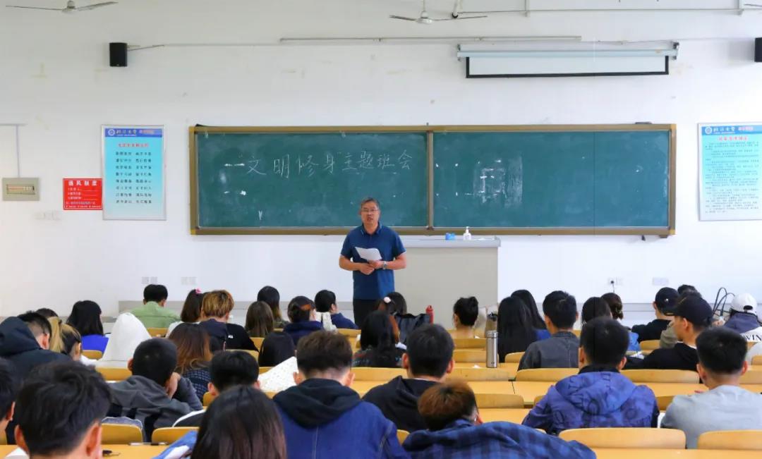 为响应学校深入贯彻落实立德树人、进一步培育和践行社会主义核心价值观、创建文明和谐的学校学习环境的号召,2021年10月14日,学工办主任李艳斌为2019级舞蹈表演专业全体同学召开“文明修身”主题班会。
