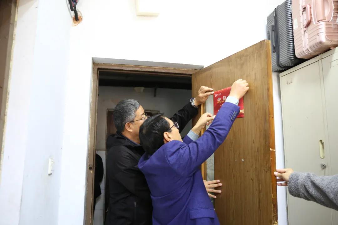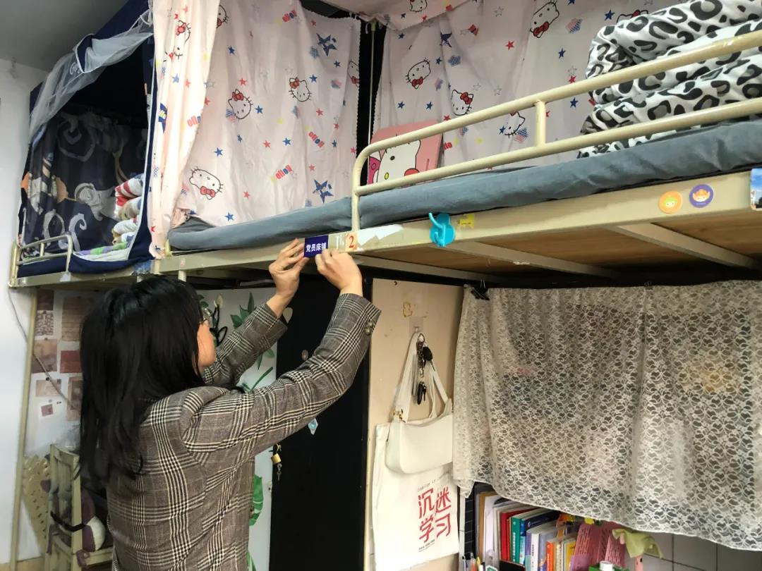 党委副书记毛子成带先后来到第二生活区C2和B5学生宿舍,现场查看了宿舍安全内务状况,并在目标宿舍门外贴上“党员宿舍”标识,在目标床位床沿上贴上“学生党员”字条。