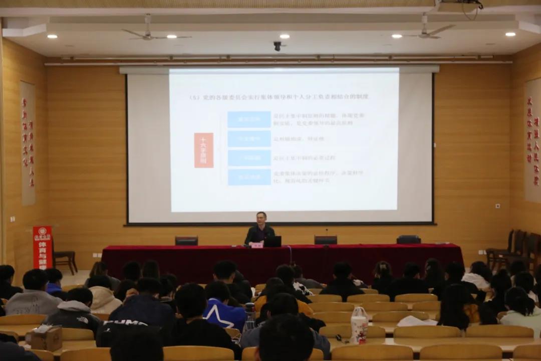 首先,刘林书记向同学们讲述到党的组织制度是我们党事业成功的坚强保证。介绍了我国民主集中制的科学内涵、基本原则以及加强民主集中制的方法,特别是集体领导、民主集中、个别酝酿、会议决定这十六字方针的讲解。之后向同学们讲到党的优良作风,呼吁同学们要积极学习党的优良作风,其具体方法有一传承三大优良作风;二学会批评和自我批评的作风;三落实八项规定培育新的作风。接下来递进到坚持群众路线,保持党与人民的血肉联系,要将为民务实清廉三方面融入血脉,突出作风建设集中解决“四风问题”。进而表明严明党的纪律,自觉维护党的集中统一。刘林书记强调修炼品德,做优良作风的传承者,作为入党积极分子应端正入党动机,树立坚定的政治立场,在思想和言行上必须始终与党中央保持高度一致。