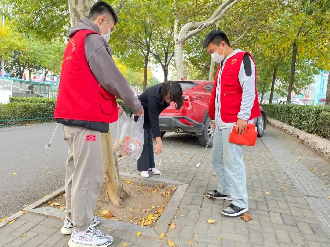 学生工作部徐秀梅科长与我院志愿者到所分配的路段进行志愿服务活动。志愿者们主要是清除临时发现的烟头、纸屑、塑料袋等垃圾,并常态保持区域卫生整洁;对乱穿马路、乱停乱放的电动车等不文明行为进行劝阻。