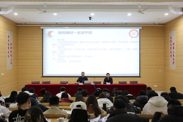 李艳斌从《中共中央关于党的百年奋斗重大成就和历史经验的决议》引出党对高校“为党育人,为国育才”的人才培养要求,强调了“五育并举”的重要性。他指出,当今时代要想作为一名合格大学生需要做到以下三个方面,读好真理之书、筑牢信仰之基,读好党史之书、汲取奋进之力,读好时代之书、砥砺强国之志。对优秀班干部,他作出四点要求:一、政治强。坚决拥护党的领导、拥护社会主义道路,增强“四个意识”,坚持“四个自信”,做到“两个维护”,坚定理想信念。二、业务精。要努力提升各方面能力(语言沟通、处理问题分析问题、组织协调等),做到腿勤、嘴勤、眼勤。三、纪律严。严格遵守各项规章制度,严以律己。四、作风正。做正派人,干正派事,弘扬正能量。本次讲座增强了学生干部责任意识,让学生干部明确自身己任,从而发挥火车头作用,带动身边团员青年积极健康向上,成长为合格青年马克思主义者。