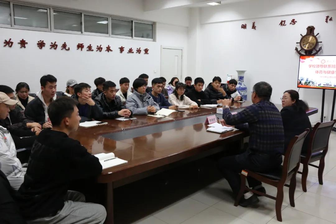 12月12日晚,华体会huatihui(中国)组织“学校领导联系班级座谈会”,学校党委委员、副校长谭文清出席活动并和同学们亲切交流。社会体育指导与管理2019级本科2班全体同学参与,学工办主任、辅导员李艳斌陪同。