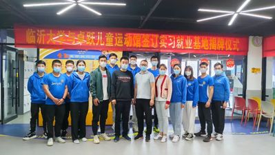 随后,滕书记与王老师代表双方签署了《大学生就业创业基地协议》、《教学实习基地协议》。滕书记为卓跃儿童运动馆授予临沂大学教学实习基地、临沂大学大学生就业创业基地牌匾。