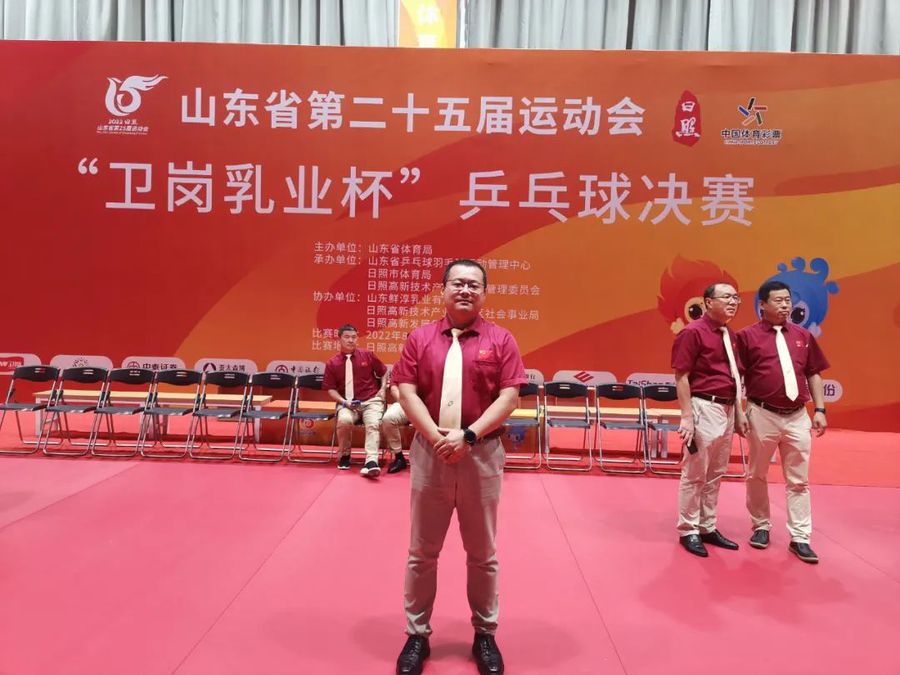山东省第25届运动会“卫岗乳业杯”乒乓球决赛于8月15日至29日在日照高新区文化体育中心举行。我院教师陈士强受山东省乒乓球运动管理中心选派,赴赛区担任赛事裁判员,并获得“优秀裁判员”称号。