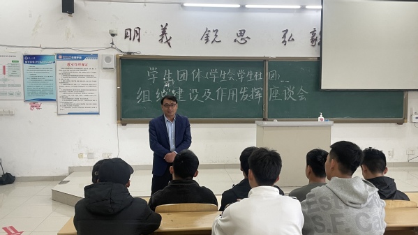 5月4日中午,学院学生组织建设及作用发挥座谈会在明义6-202教室举行,党委副书记毛子成出席活动并讲话。