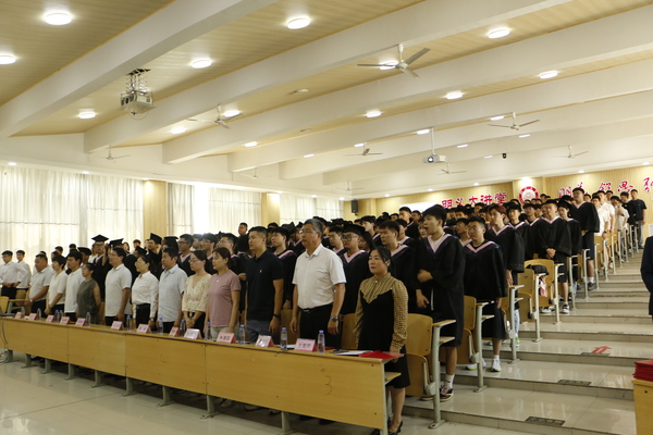 院长杨涛致辞,他回顾了2019级学生四年求学生涯,并对大家提出了四点希望:一是希望大家践行“实”字校风,秉持笃学实干。二是希望同学们牢记“明义,锐思,弘毅,致远”校训,把个人理想融入国家和民族的事业中。三是希望同学们以积极心态担当社会责任。四是希望同学们“珍惜”人生,“珍爱”事业,“珍重”自己。