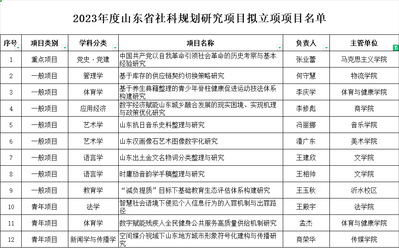 8月21日,2023年度山东省社科规划研究项目立项名单公布,体育学共立项27项,其中:重点项目1项、一般项目19项、青年项目7项。