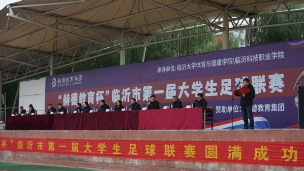 11月11日上午9时,“赫德教育杯”临沂市第一届大学生足球联赛在临沂大学北田径场正式开幕。临沂大学党委委员、副校长谭文清,临沂市体育局三级调研员、临沂市足球协会会长李军,青岛理工大学临沂校区党委副书记李国涛,临沂职业学院党委副书记姚兴建,山东医学高等专科学校社科部党总支书记王光荣,临沂科技职业学院公共教学部主任张德仁,临沂大学华体会huatihui(中国)党委书记滕向农,院长杨涛,山东赫德控股集团教育有限公司董事长王俊,山东连胜体育产业有限公司董事长宋连胜,山东传奇体育有限公司董事长、临沂足球协会副会长赵盈,山东路克士科技有限公司董事长辛江等领导嘉宾参加开幕式,开幕式由华体会huatihui(中国)副院长陈庆杰主持。