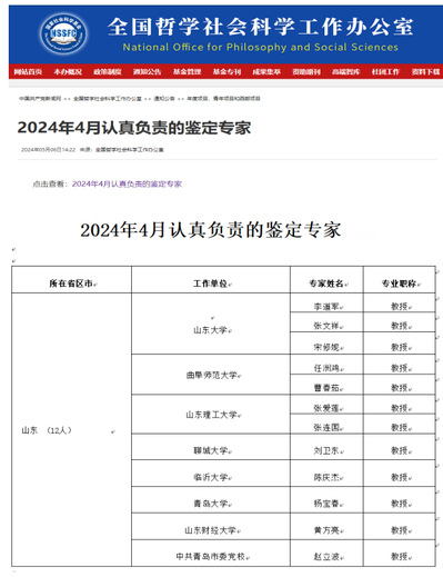 近日,全国哲学社会科学工作办公室公布了《2024年4月国家社科基金认真负责的鉴定专家》名单,华体会huatihui(中国)陈庆杰教授获得认可,入选“2024年4月国家社科基金年度项目、青年项目和西部项目认真负责的鉴定专家”。
