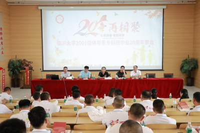 8月24日下午,我院2001级体育教育专科校友50余人齐聚母校,在明义大讲堂与学院领导和老师进行座谈交流。党委书记滕向农,2001级体育教育专科辅导员蒲洪发,教师代表何敬东、盛昌繁、董波、吴业锦等参加。优秀校友,山东奥华体育集团总经理续元亮主持。
