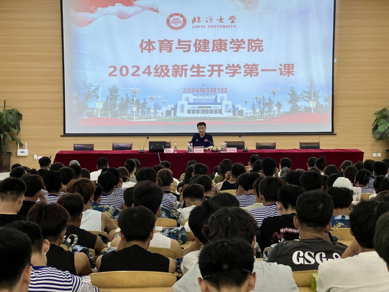滕向农以“新时代体育学子的历史使命和责任担当”为题,介绍了临沂市的历史沿革、文化名人和发生在这片热土上的革命事迹,阐释了临沂大学的办学历史和发展现状,重点就校“实”的校风和“明义、锐思、弘毅、致远”校训进行了解读。他指出,大学最重要的意义在于找到你自己。要在大学四年这个阶段中学会认识自己、接受自己、和自己相处。对于在临沂大学要做什么,他提出了三点要求。一要树立远大理想;二要脚踏实地埋头苦干;三要发扬体育精神。他希望大家置身中国特色社会主义新时代广阔舞台中,正确认知世界和中国发展大势,牢记党和人民嘱托,不负韶华,不负时代,不负人民,以临大红色基因和沂蒙精神凝心铸魂,成为有理想、敢担当、能吃苦、肯奋斗的好青年,为全面建设社会主义现代化国家、以中国式现代化全面推进中华民族伟大复兴作出青春贡献。