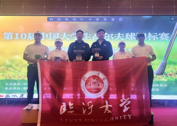 第十届全国大学生高尔夫球锦标赛于10月12日-18日在辽宁省大连市西郊高尔夫球场举行,临沂大学高尔夫球代表队在比赛中表现优异,取得专业组男子团体亚军、男子个人亚军、混合团体季军的赛事最佳成绩,同时实现了我校奥运项目全国性大学生赛事的历史性突破。由于比赛中的优异表现,参赛队员韩建东将获评高尔夫球国家一级运动员,张远涛、季哲薇、郭小茹将获评高尔夫球国家二级运动员。