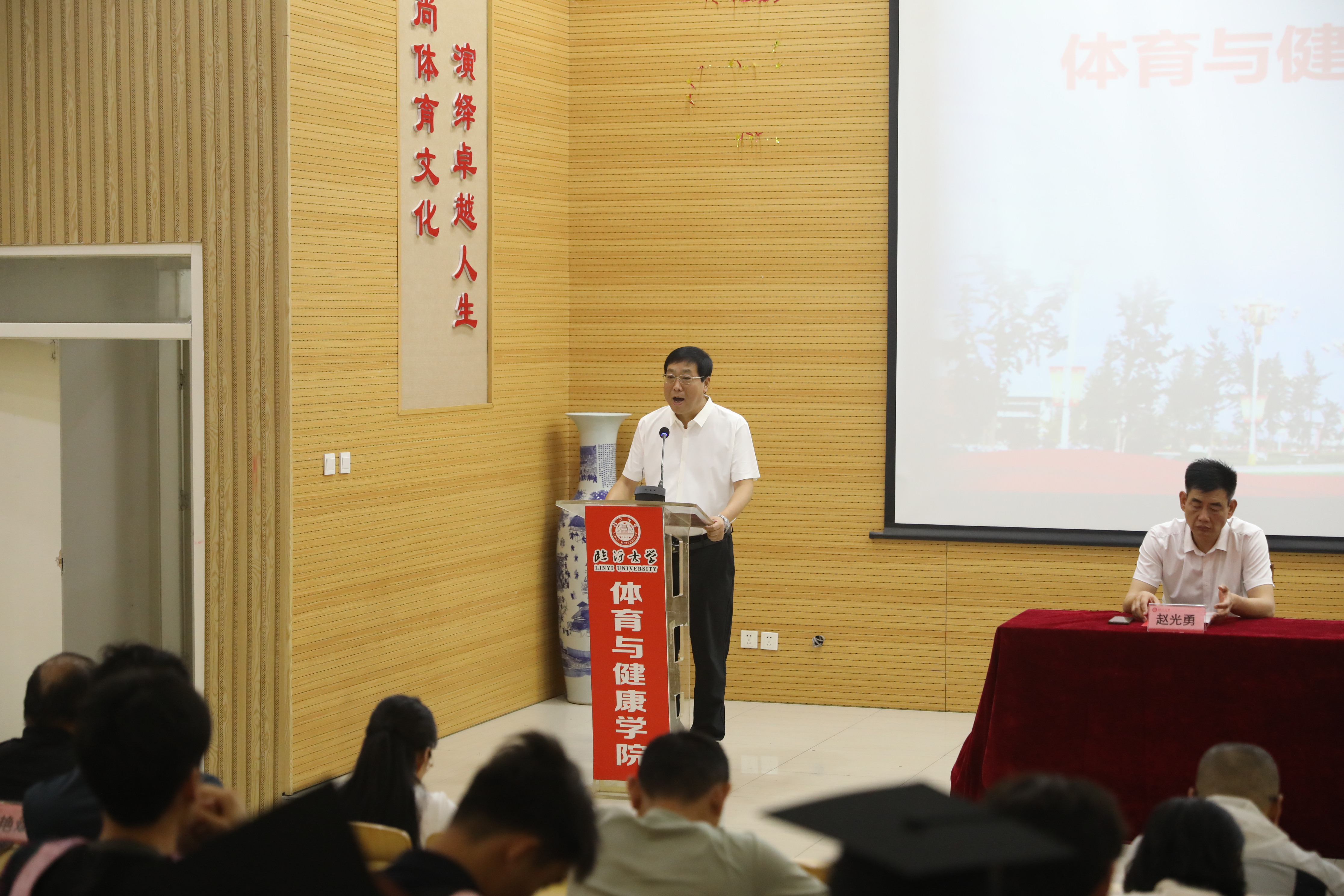 副院长李洪波发表致辞,希望同学们带着课堂研磨的专业底气、赛场淬炼的拼搏精神,让体育温度照亮更多角落,让‘更高、更快、更强、更团结’的体育精神,真正落地生根!