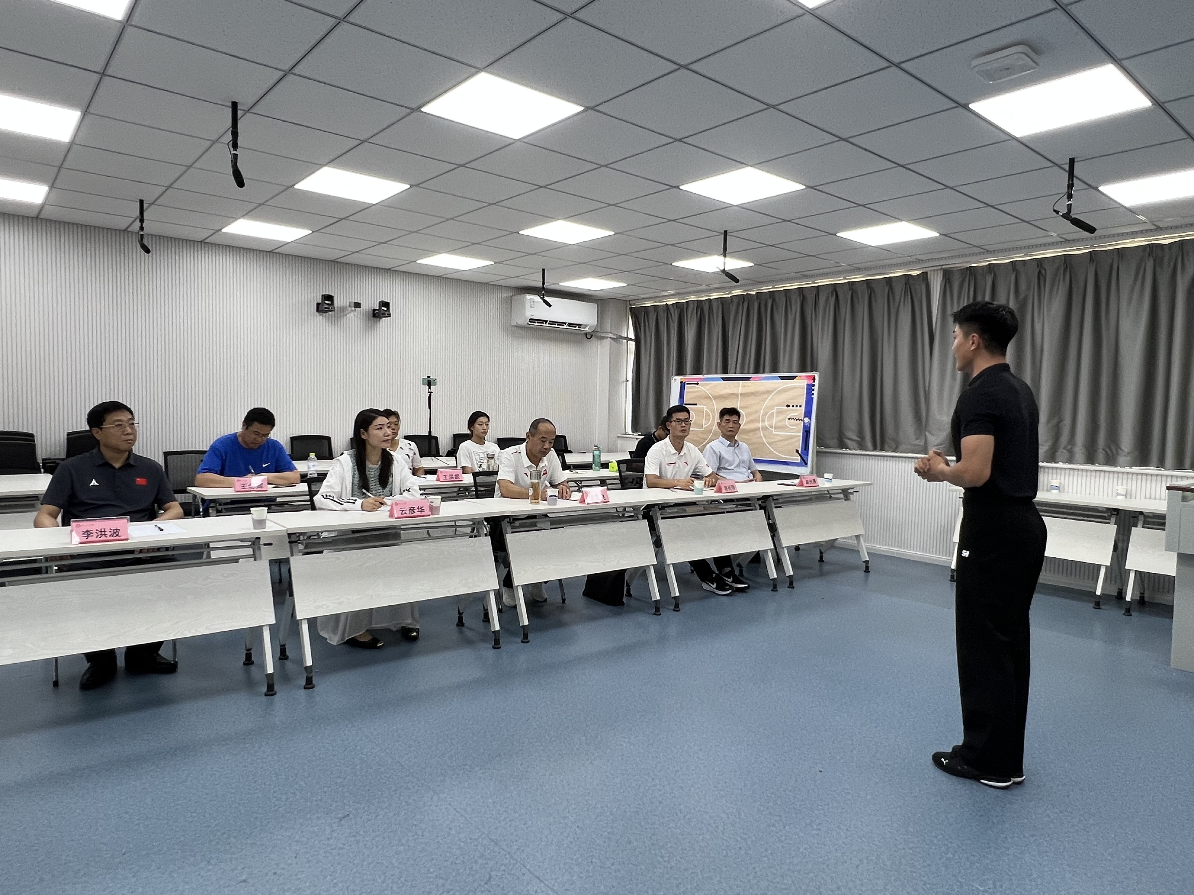 为更好地备战2025年第十三届山东省师范类高校学生从业技能大赛,7月2日下午我院聘请临沂市教育科学研究院体育科科长徐凤飞,临沂市杏园小学体育教师赵西强,沂河新区小学体育兼职教研员、临沂外国语学校云彦华主任为参加比赛的学生进行模拟上课的指导。副院长李洪波、赵光勇,指导教师王念辉、王洪妮参加了此次会议。