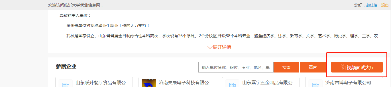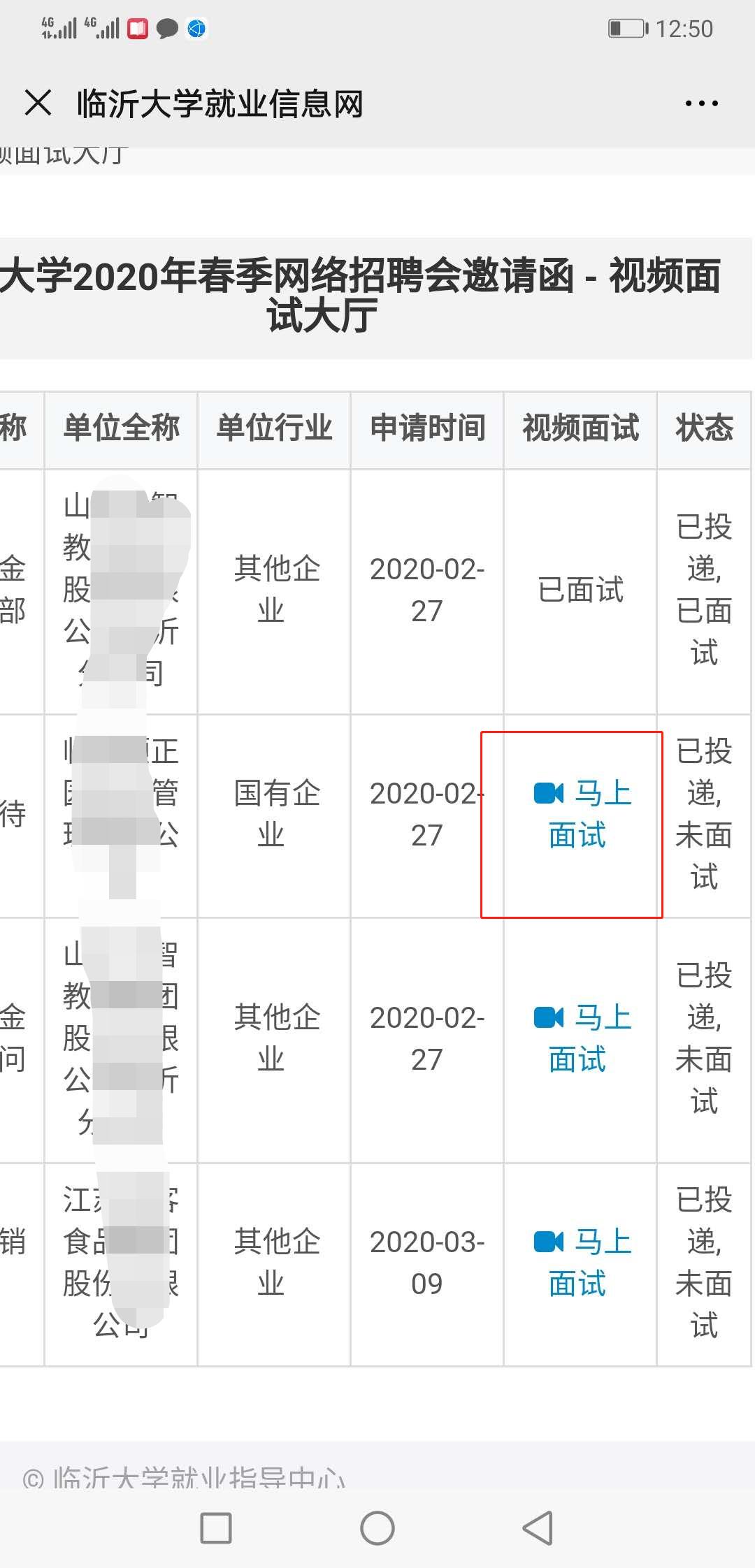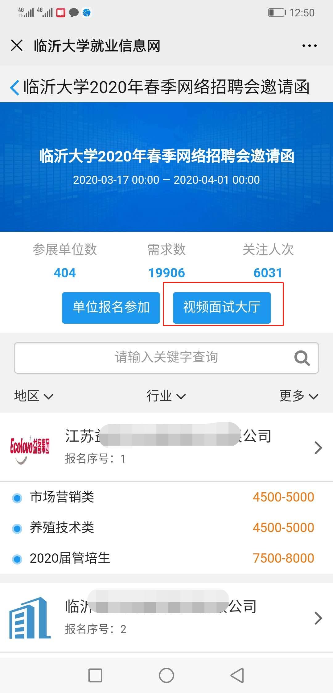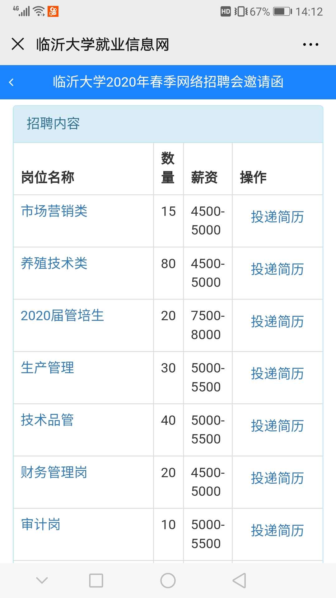 投递简历,点“招聘会”,找到“临沂大学2020年春季网络招聘会邀请函”,点击“进入会场”
