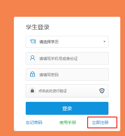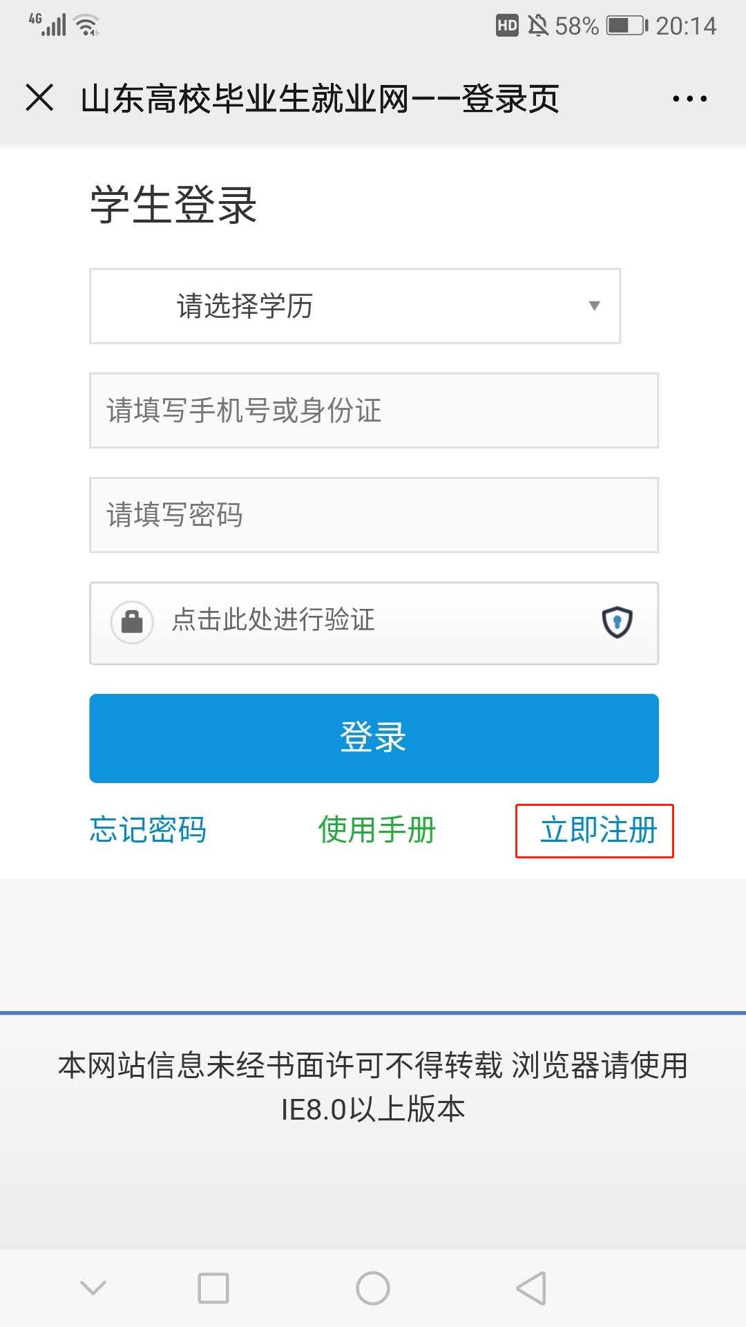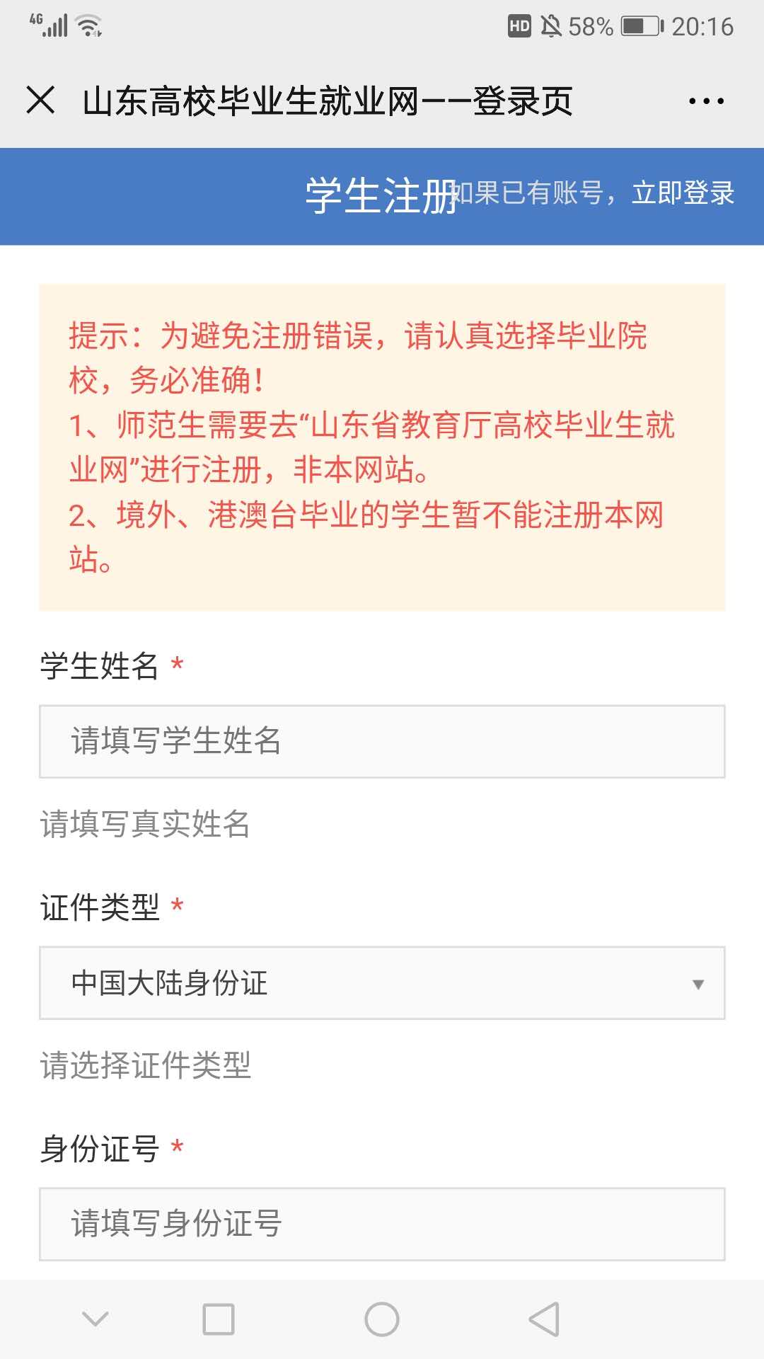 (注意:师范类毕业生需先注册,点击“立即注册”,根据提示输入相关信息。非师范类毕业生无须注册,直接登录。)
