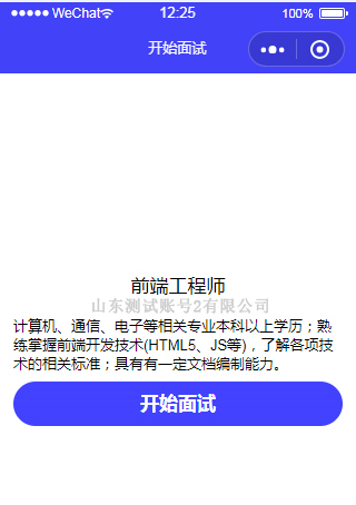 在面试小程序页面,点击“开始面试”,进入面试页面(注意打开前置摄像头)。