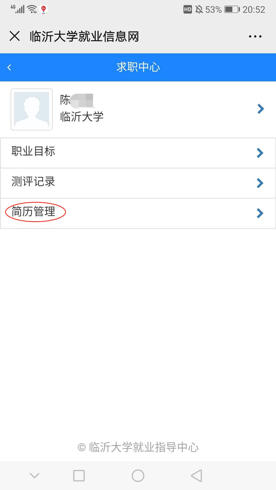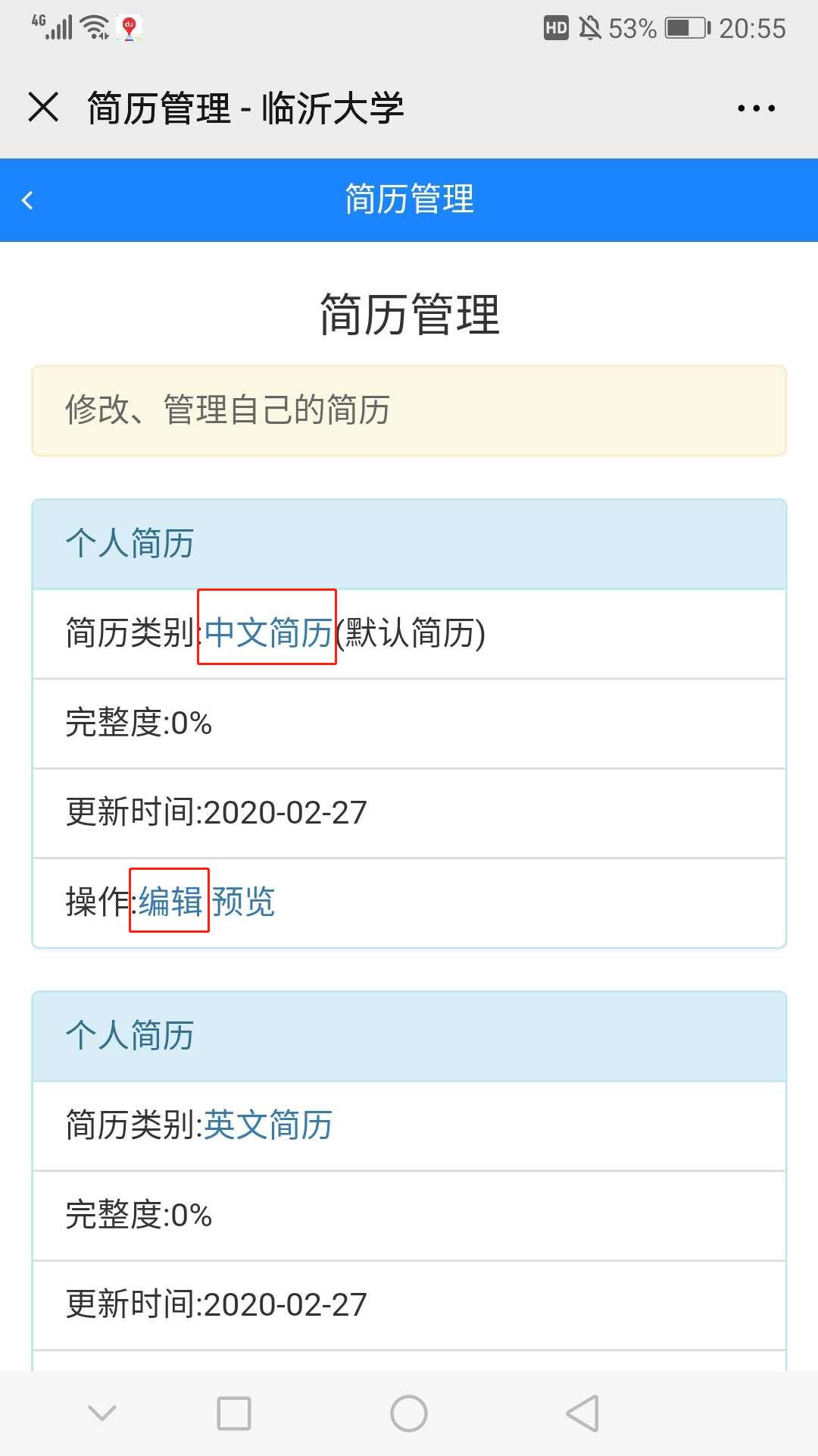 依次点击“就业服务”-“微主页”-“学生登录“”-“求职中心”-选择“简历管理”,选“中文简历”,点“编辑”,输入各栏目内容,完整度必须达到80%以上。