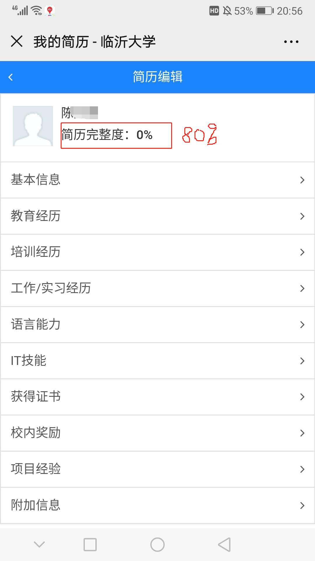 3、在投递简历前,大家需要完善个人简历,完善度要达到80%以上。